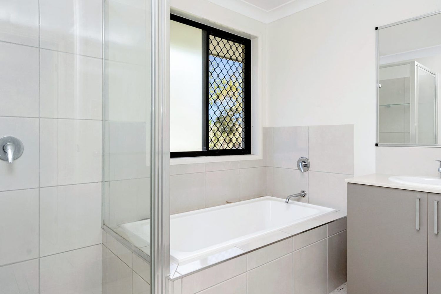 - Main bathroom with separate bath and shower