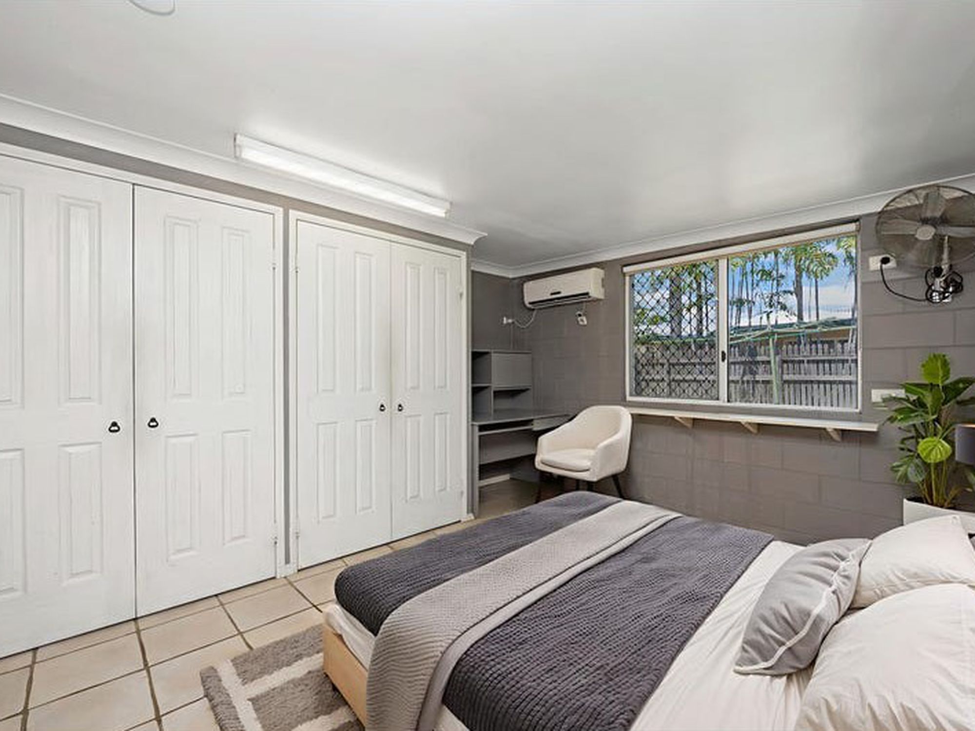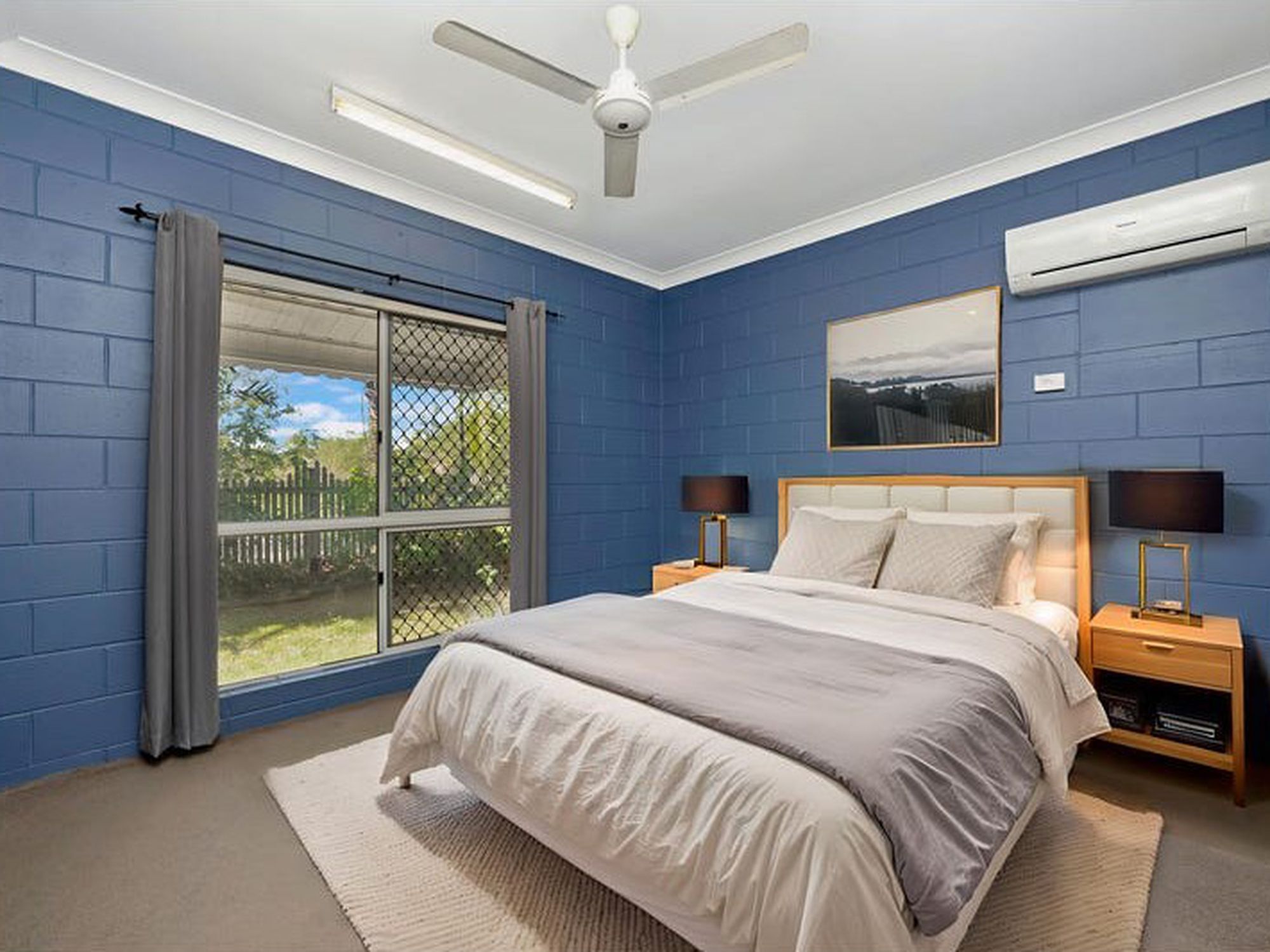 • Four air-conditioned bedrooms with built-in robes and ceiling fans