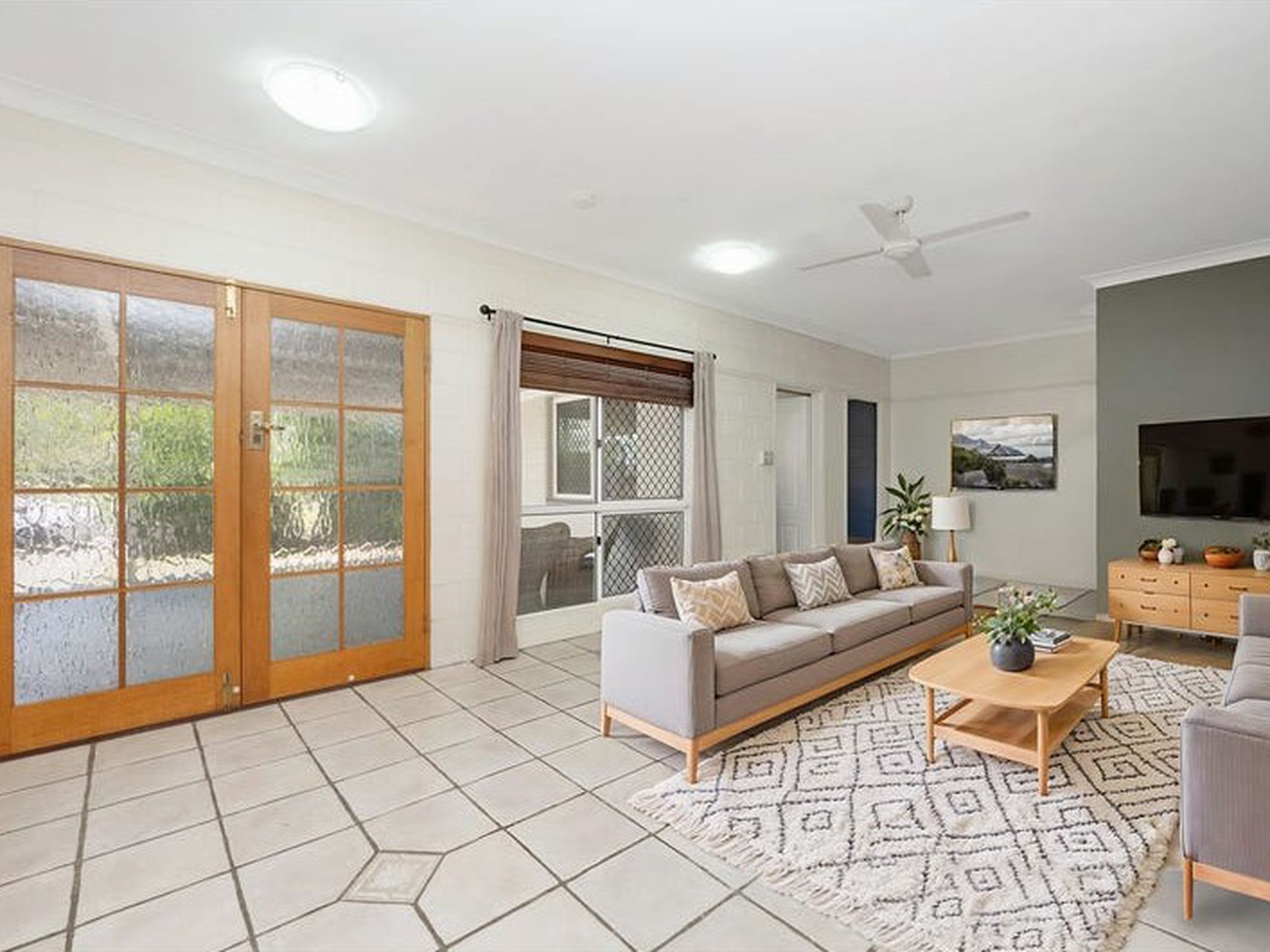 • Two large living areas divided by French glass doors for flexible living