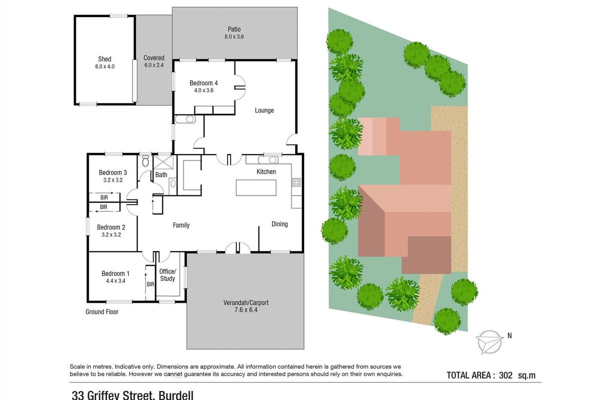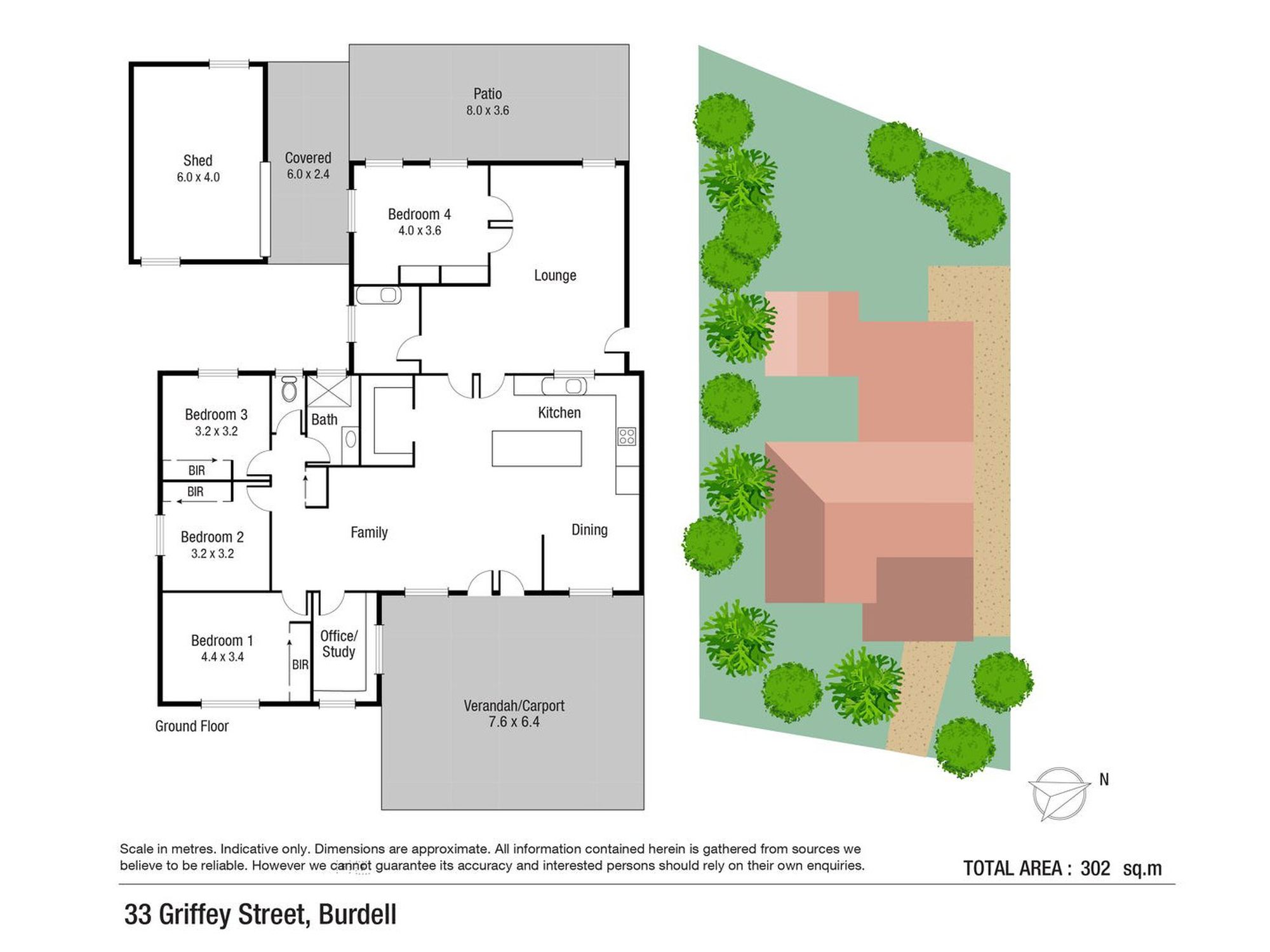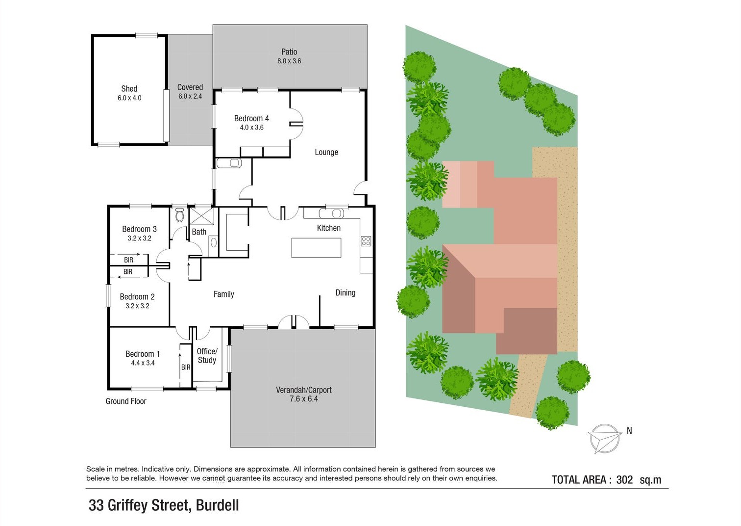 • 6m x 4m powered shed with roller door, windows, and lean-to patio connection