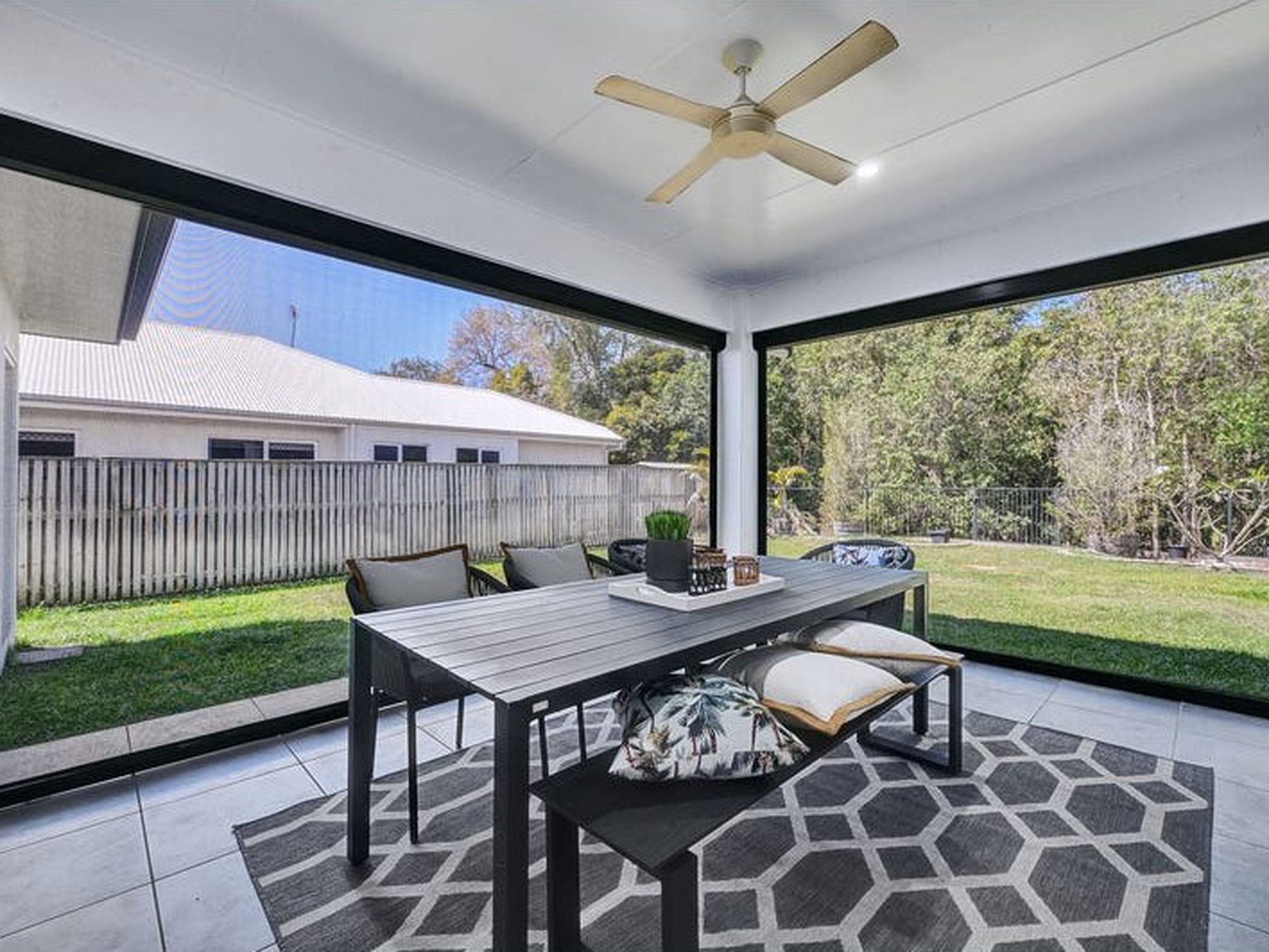 - Tiled outdoor patio with full screening to enjoy the outdoors comfortably