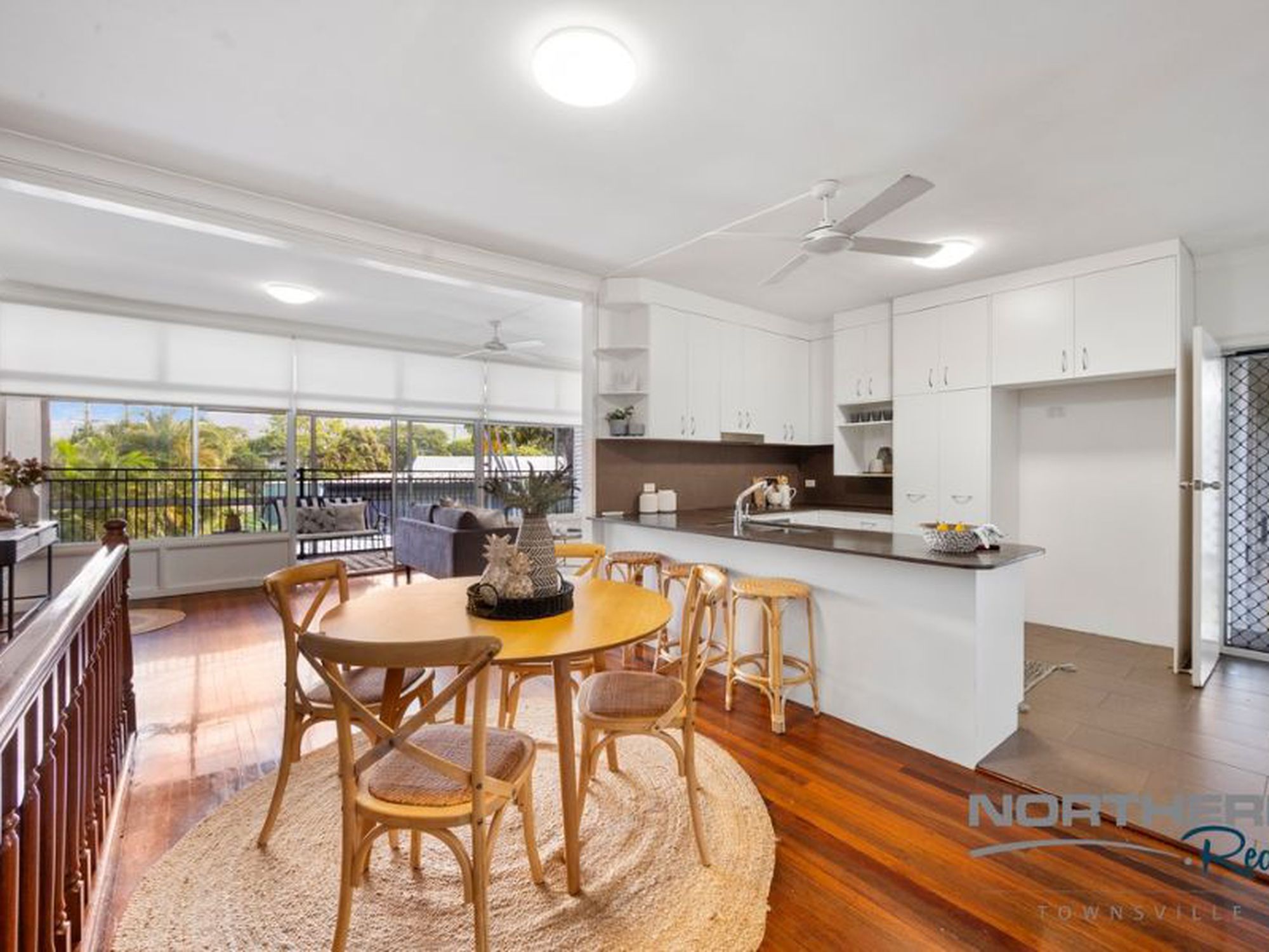 Light filled living and dining areas