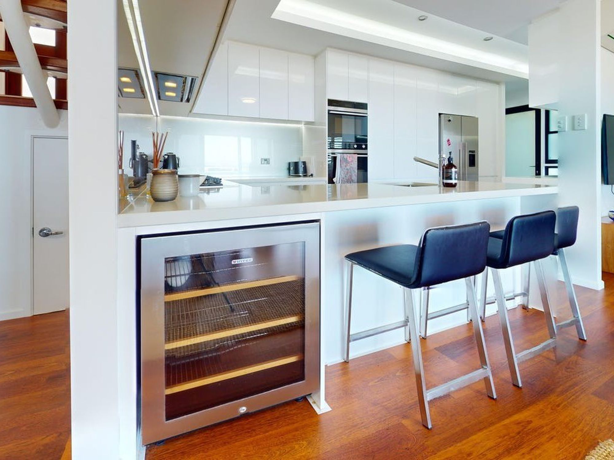 - Designer kitchen with floor-to-ceiling cabinetry and quality appliances