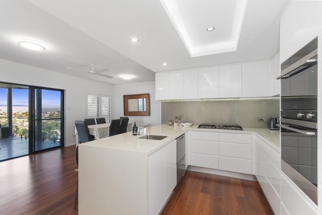 Inside, refined finishes and a clever layout create an inviting, low maintenance haven. The lower level centres around a crisp white kitchen with premium appliances, flowing naturally into open living and dining spaces positioned to maximise the outlook. Step outside to the expansive deck and enjoy sun-drenched days or evening lights shimmering across the city and marina. Upstairs, three generous bedrooms provide peaceful retreats, including a standout main suite complete with walk-in robe, ensuite and breathtaking coastal views. With body corporate maintaining shared areas, this home offers the ease of townhouse living while retaining the privacy of a standalone residence.