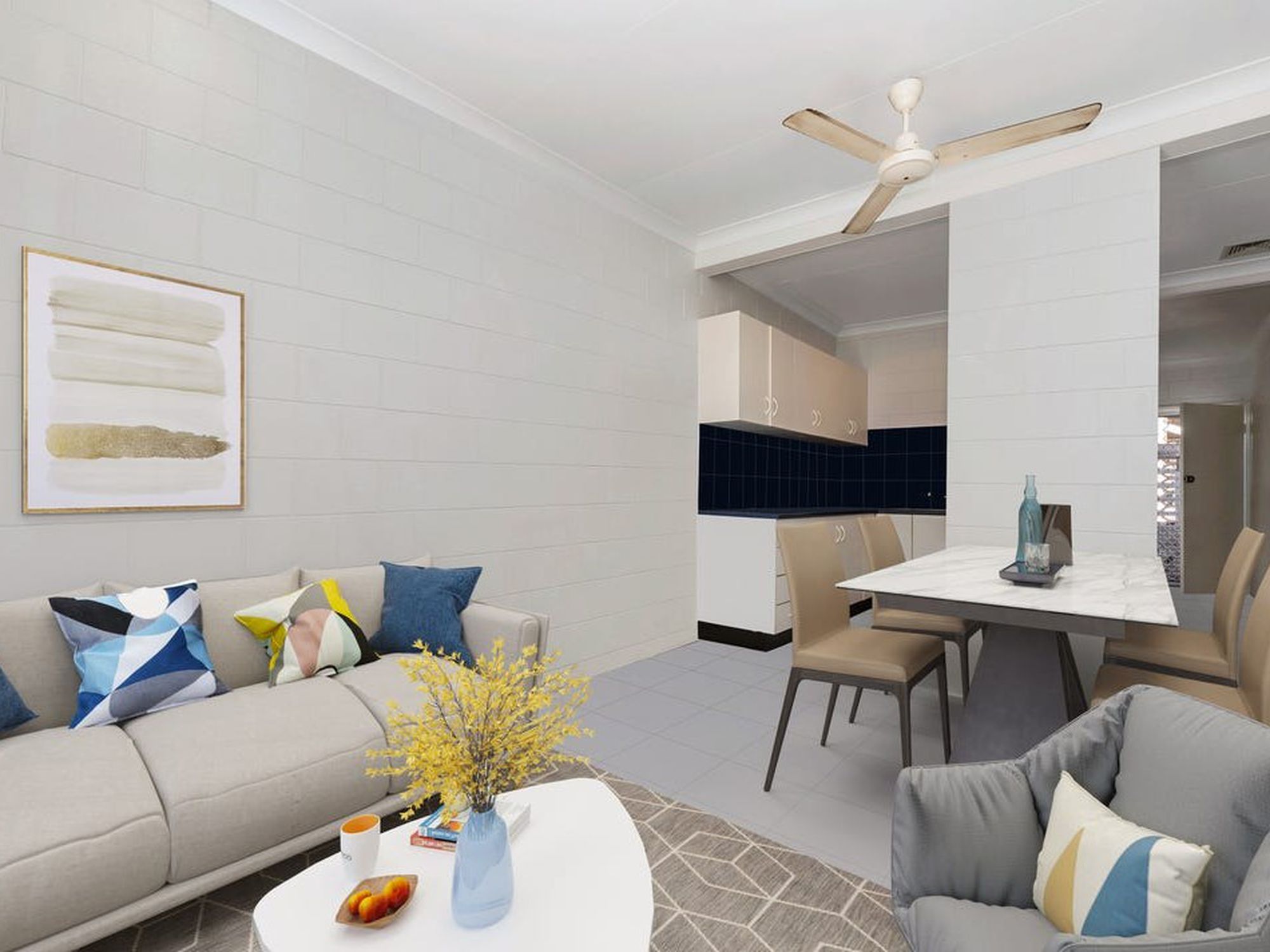 - Functional kitchen and living area