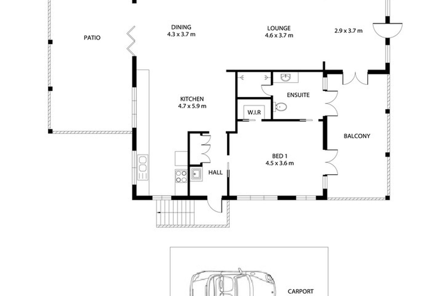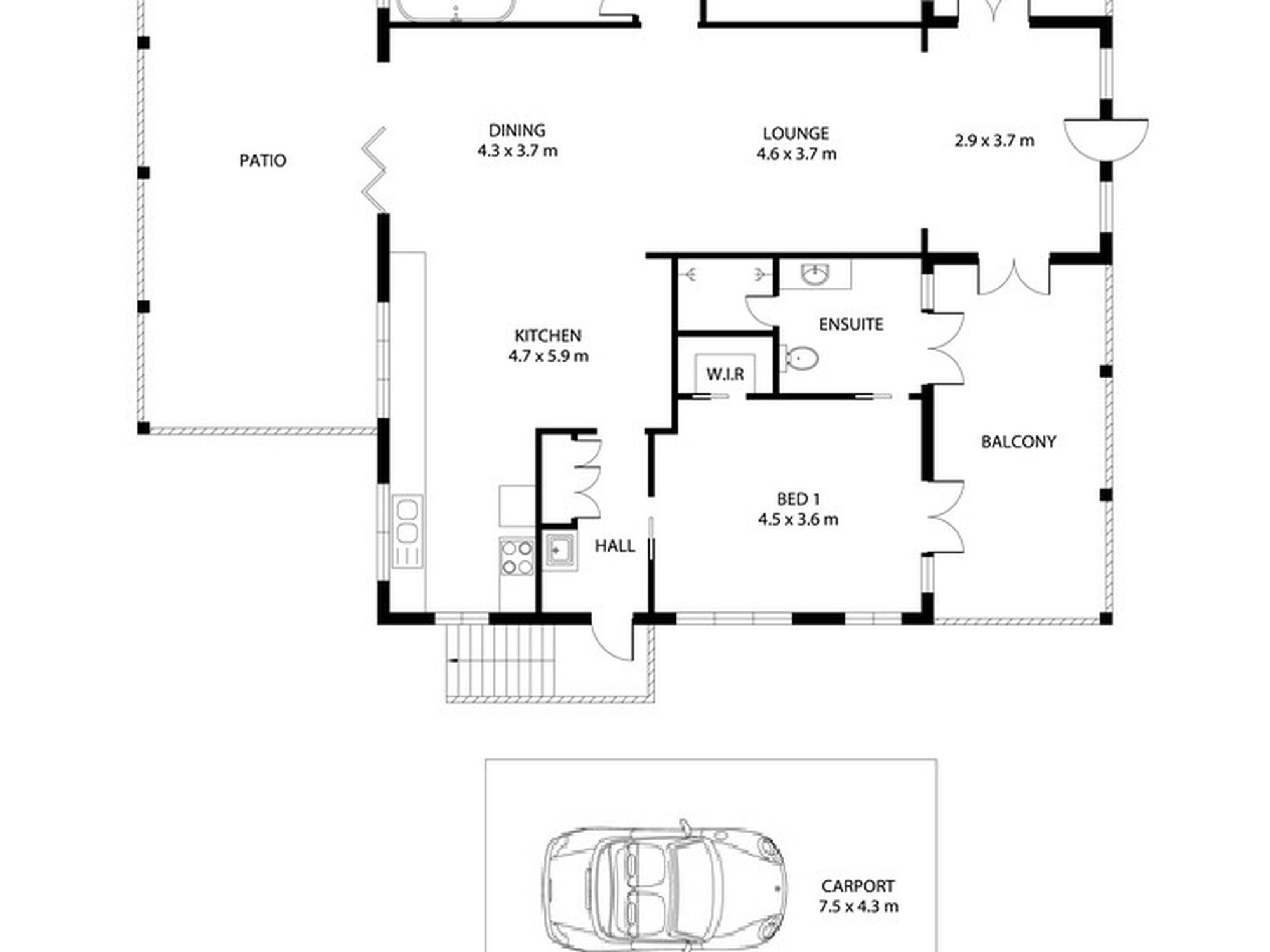 - 1 Carport with additional space for vehicles, trailers or toys