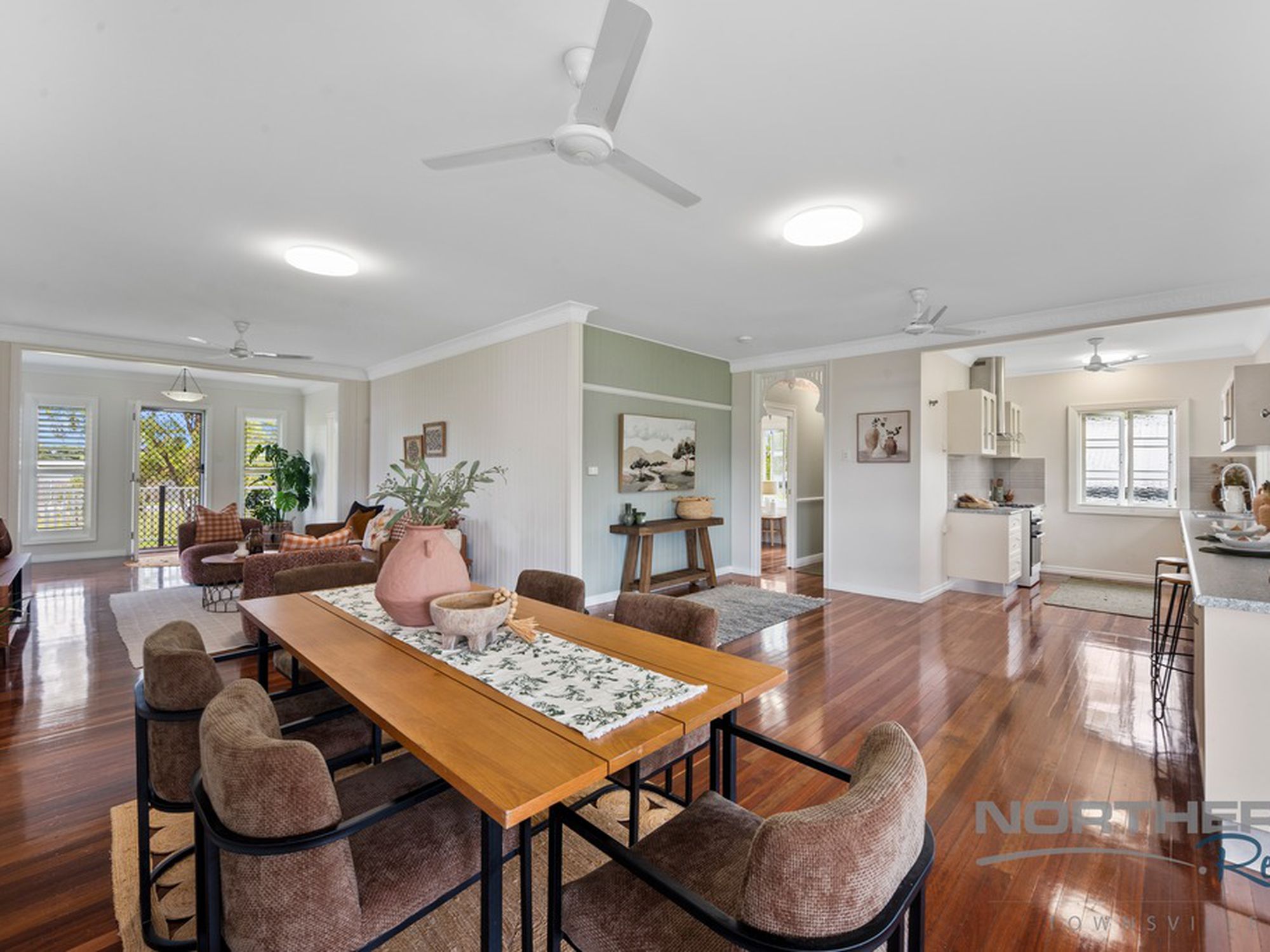 - Light filled living spaces with polished timber floors throughout