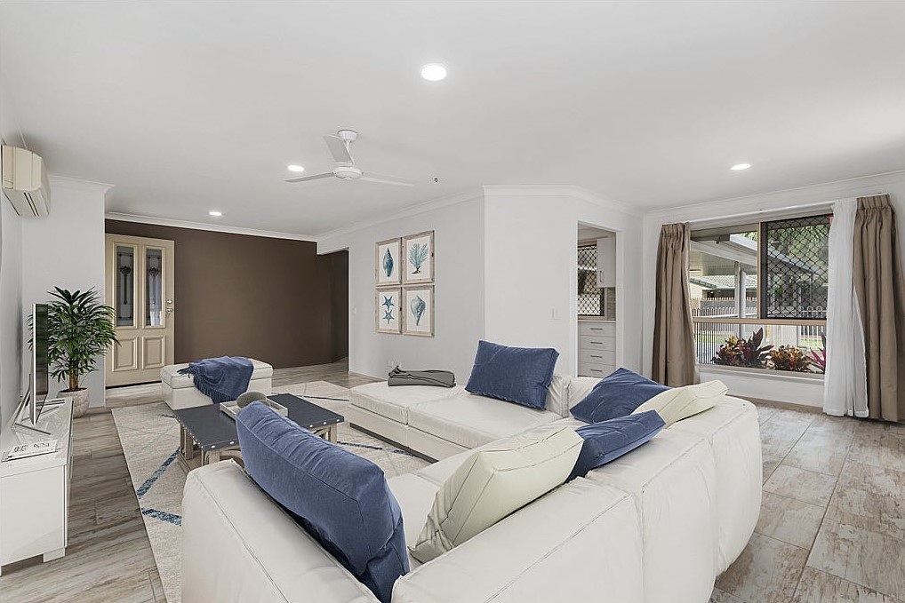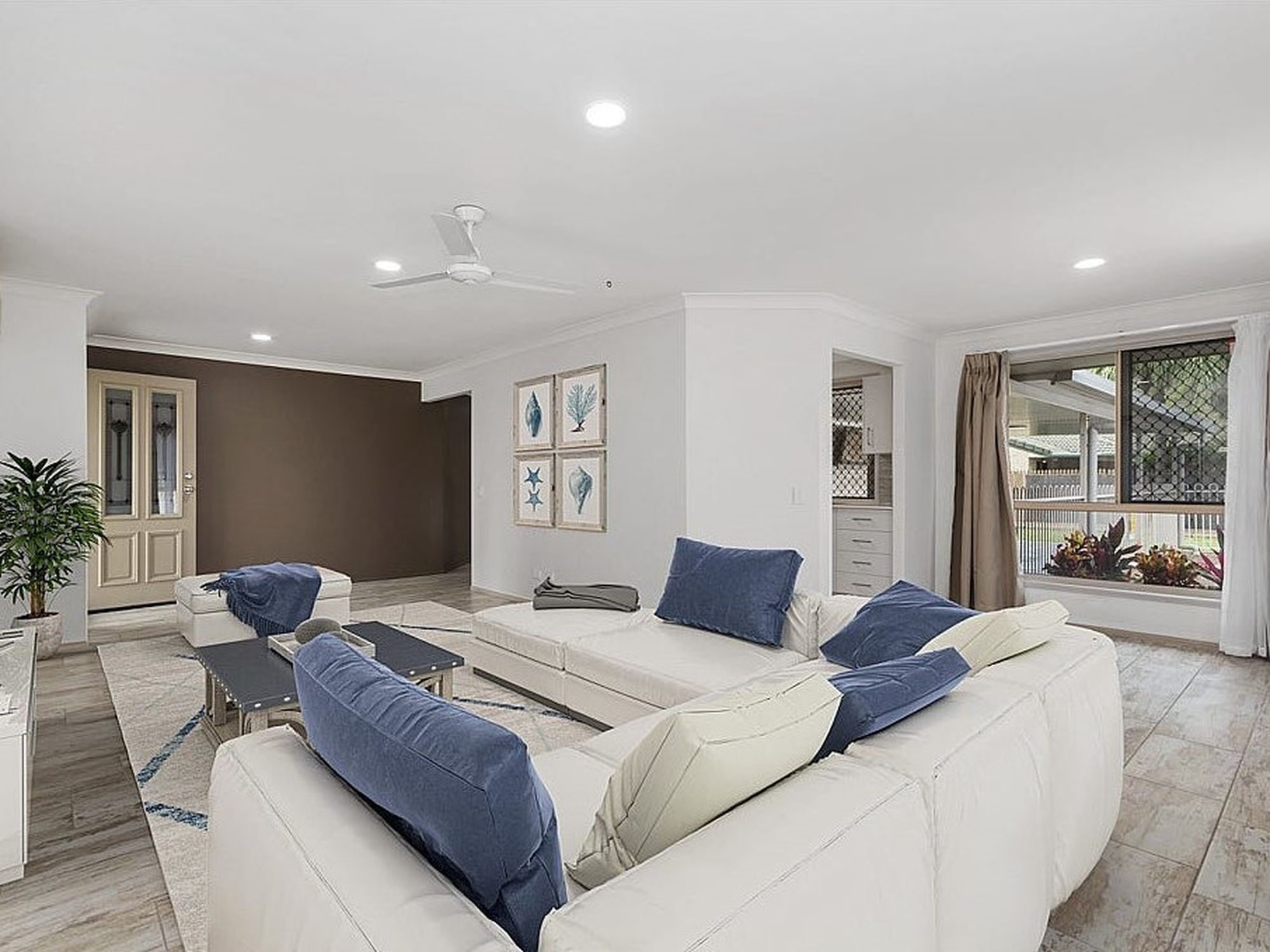 Designed for relaxed living, the home features a modern kitchen with stone benchtops that flows seamlessly into the open plan living and dining area. Step outside to a spacious covered entertaining area, perfectly positioned alongside the in ground pool, creating an ideal setting for weekend BBQs and family gatherings.