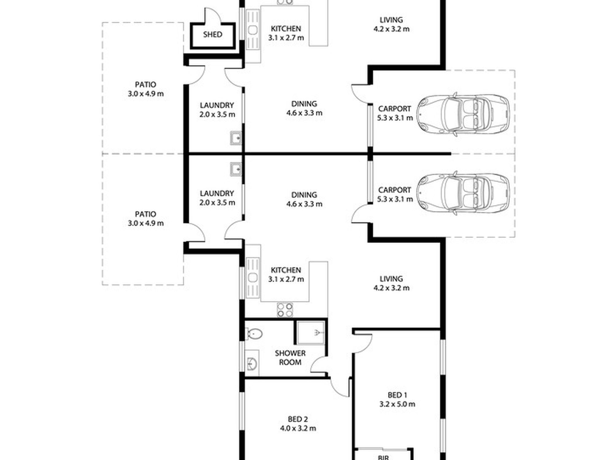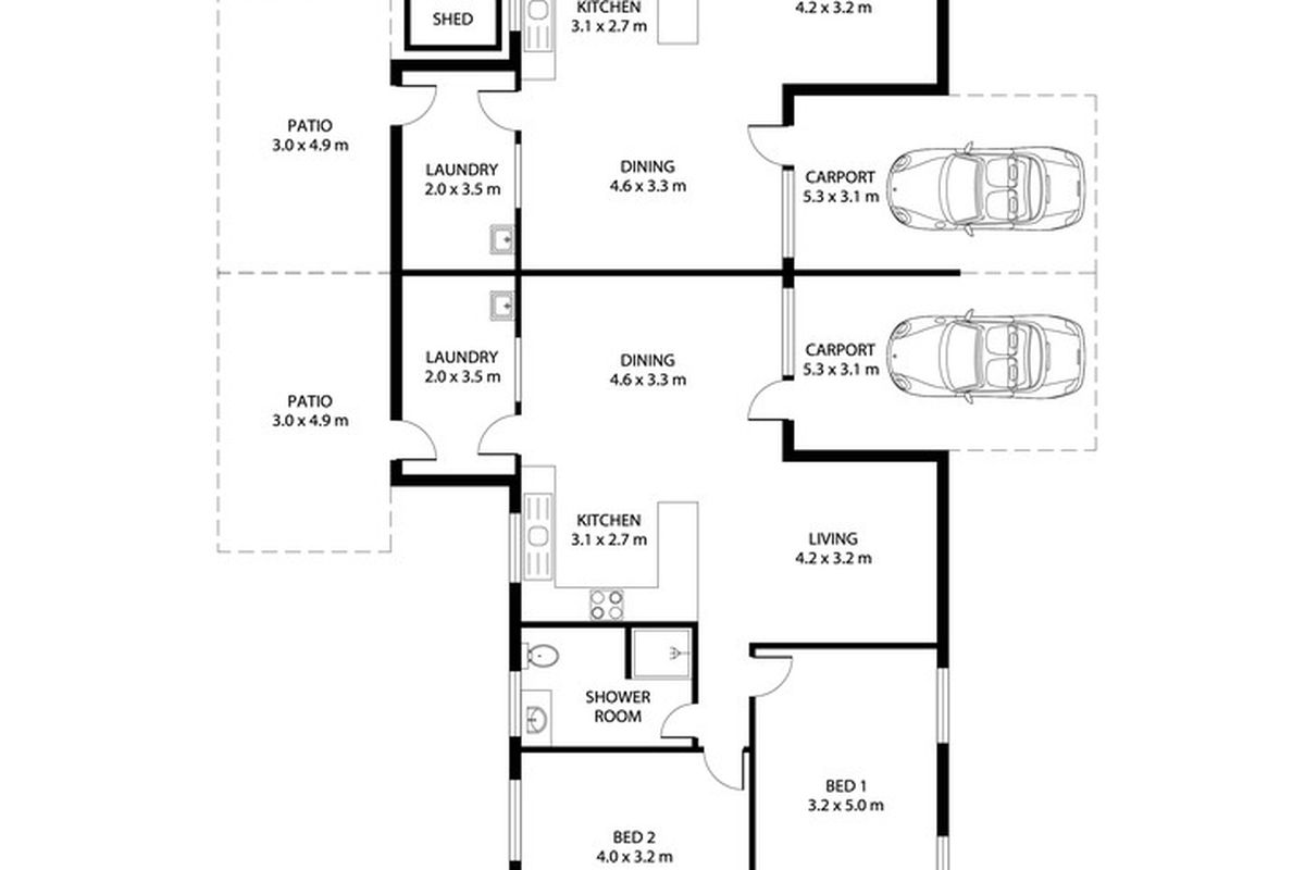 - Duplex configuration comprising of 2 x 2-bedroom units
