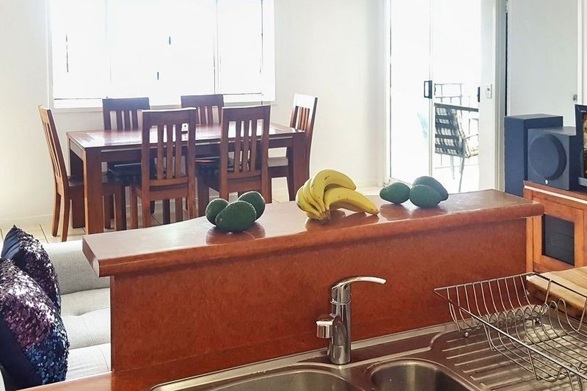 *Items included in lease: Queen beds x 2, bedside table + lamp x 2, chest of drawers, 6 seat dining table, sofa, coffee table, entertainment unit, television, 4 seat outdoor setting, refrigerator, dishwasher, oven, microwave, toaster, kettle, kitchen utensils, crockery, cutlery, 7kg washing machine, dryer, iron, ironing board, vacuum cleaner